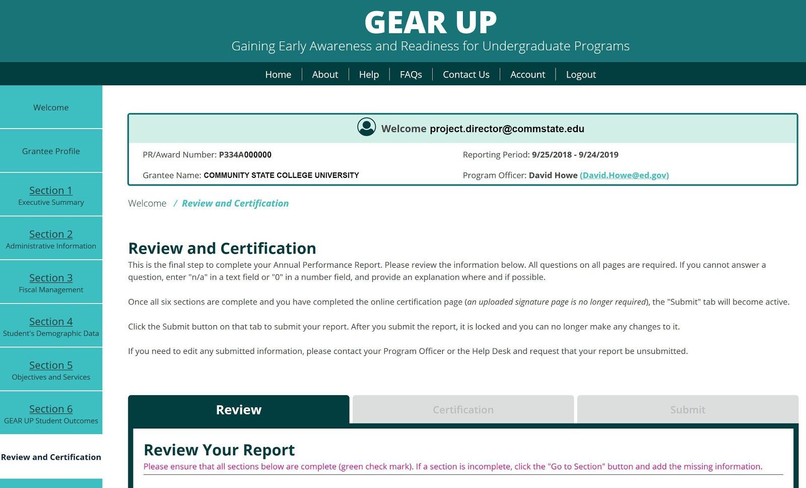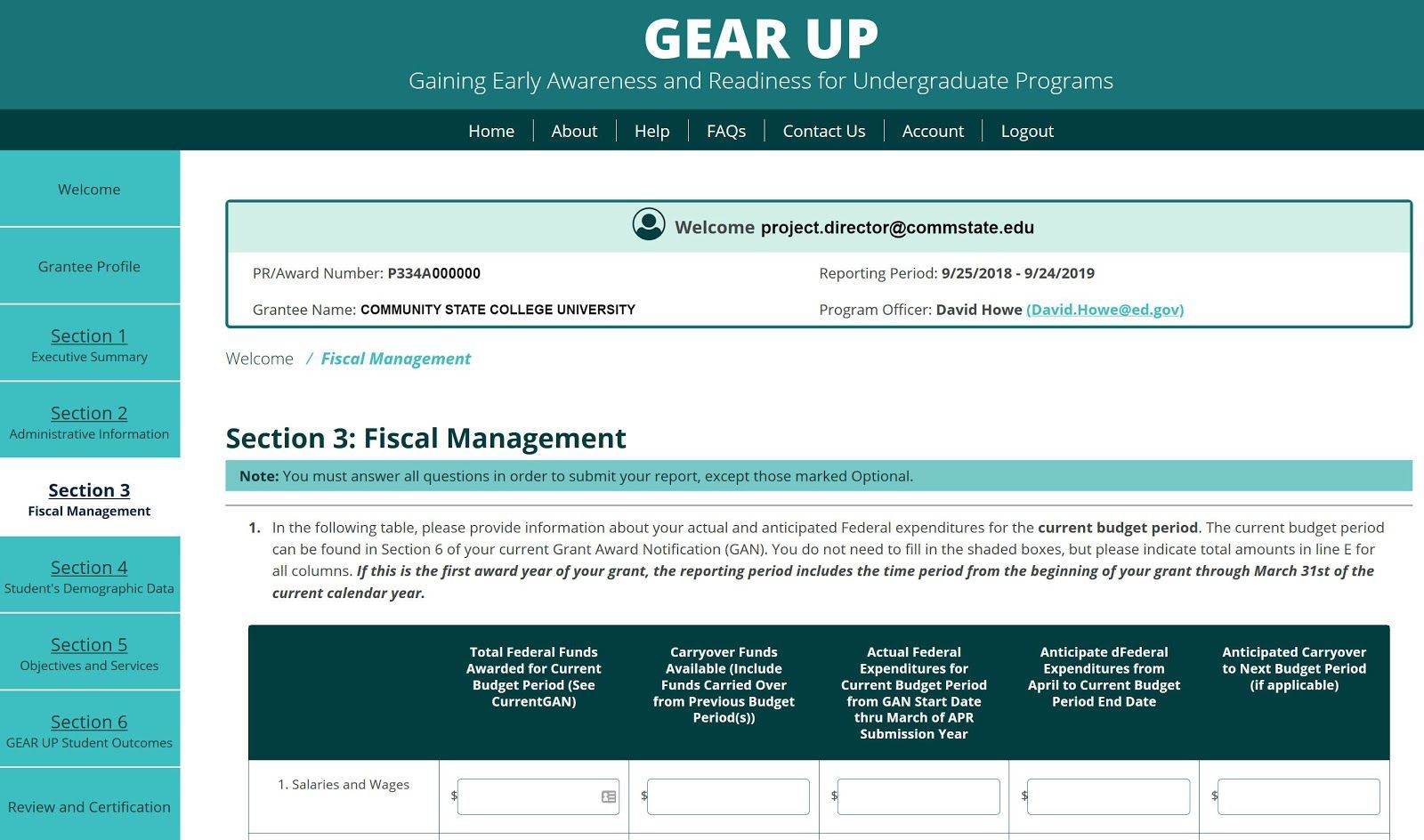For complete details about this entire process, please read this User Guide and the Blank APR Form, both of which are available online at https://gearup.ed.gov/help.