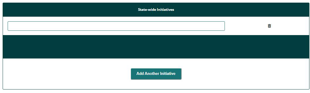 (State Grantees Only) In question 13 you will be asked to create a list of state-wide initiatives implemented . To get started, click the Add an Initiative button.