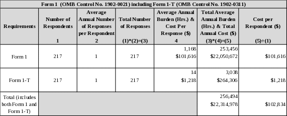 Type of Request: Three-year extensions of FERC Form Nos. 1, 1T, 1-F, 1-FT, 3-Q, and 3Q-T with no changes to the current reporting requirements.2 This renewal incorporates the requirements and burden represented by the 1 and 1T, 1-F and 1-FT, 3-Q and 3-QT (electric and gas), respectively. Staff anticipates that the Commission will seek to retire the 1T, 1-FT, and 3-QT as duplicative after OMB decisions are made.