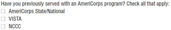 Added the following checkboxes to the question “How did you hear about AmeriCorps?”