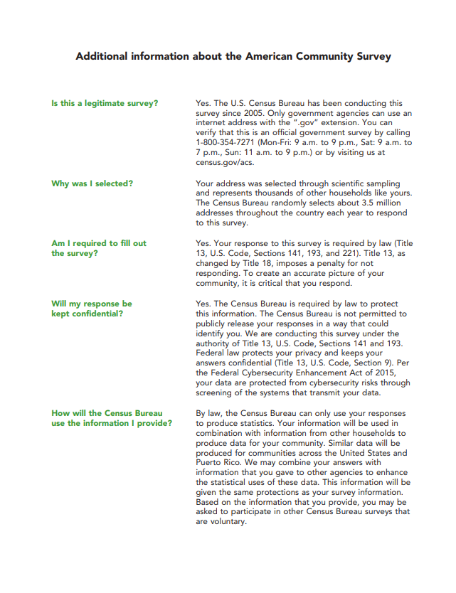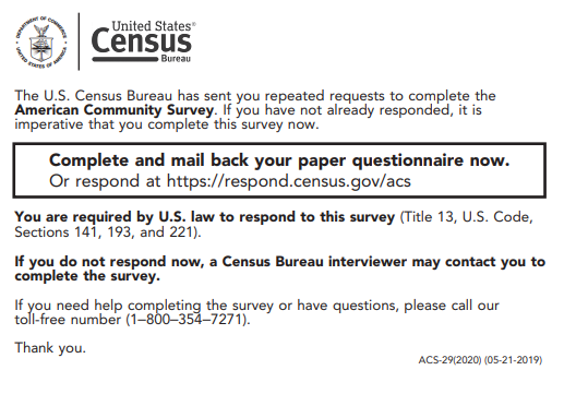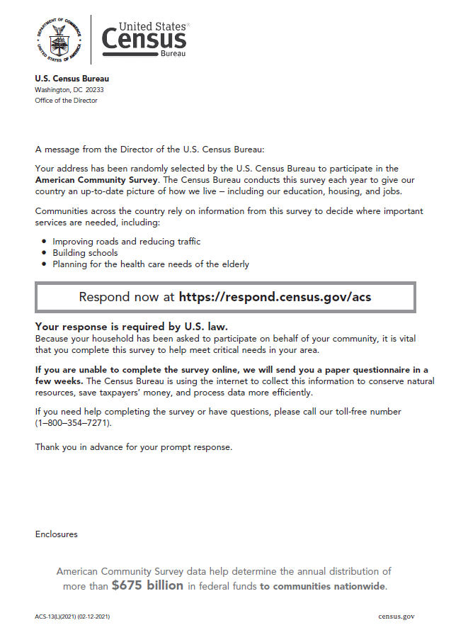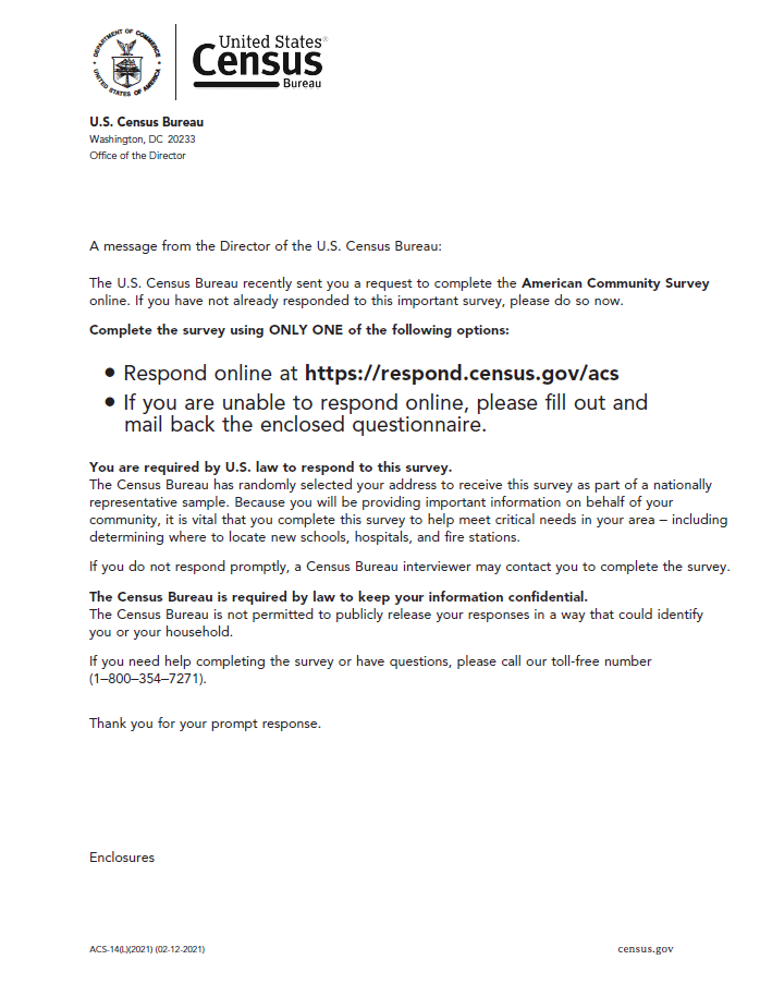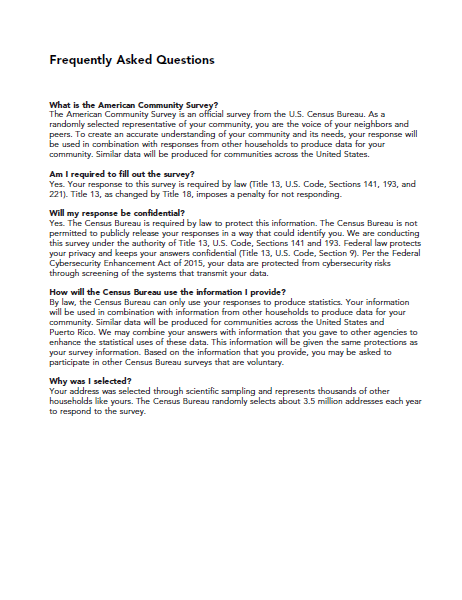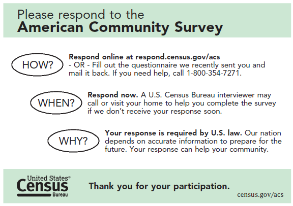 Explaining that response to the ACS is a normal activity regularly completed by others in the community—Knowing others have responded may help make it more comfortable to respond for those who are hesitant to do so (Cialdini, 1984; Hallsworth et al., 2014).