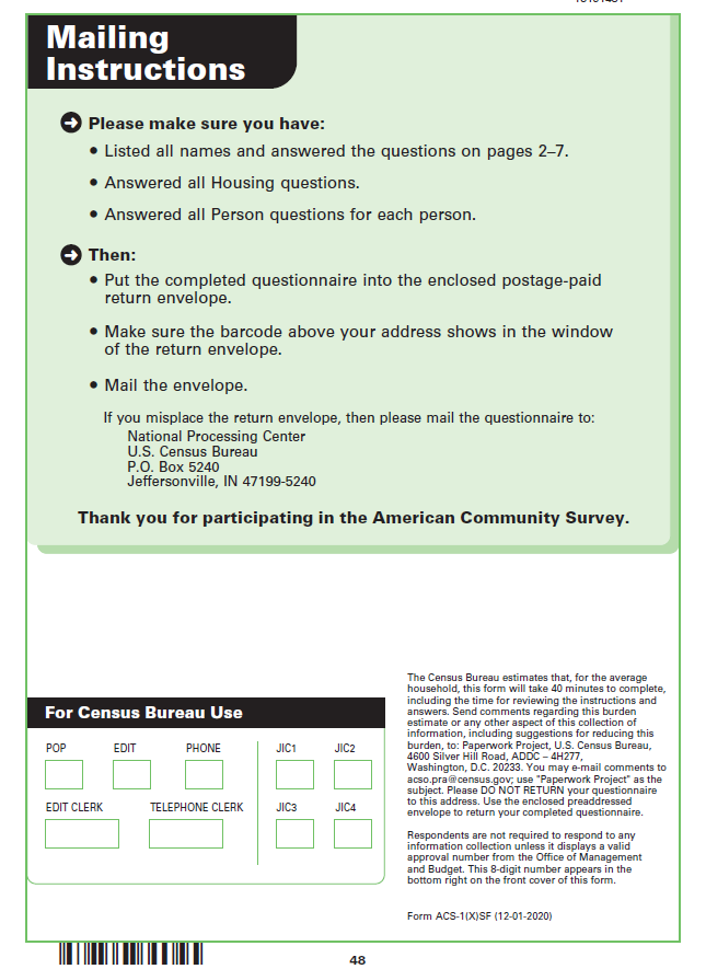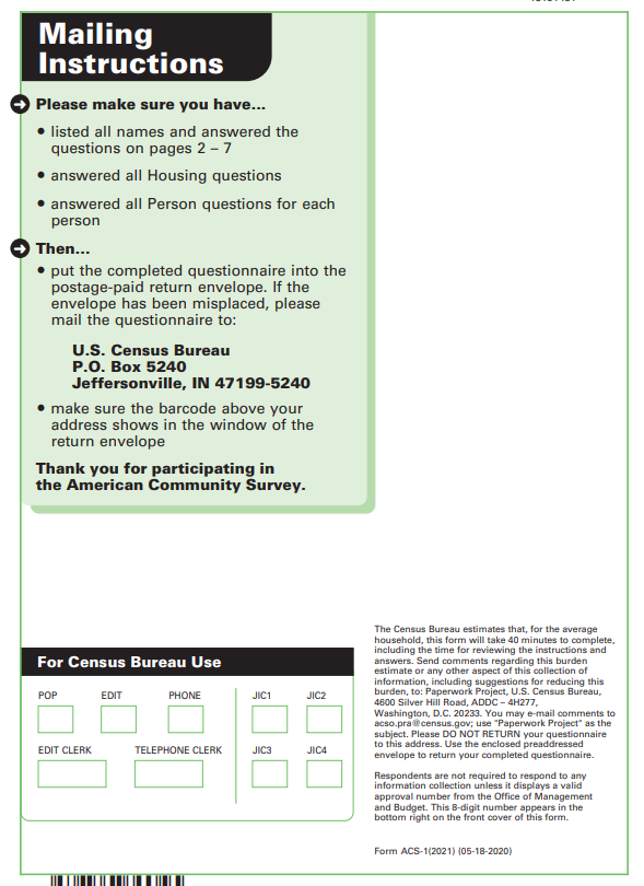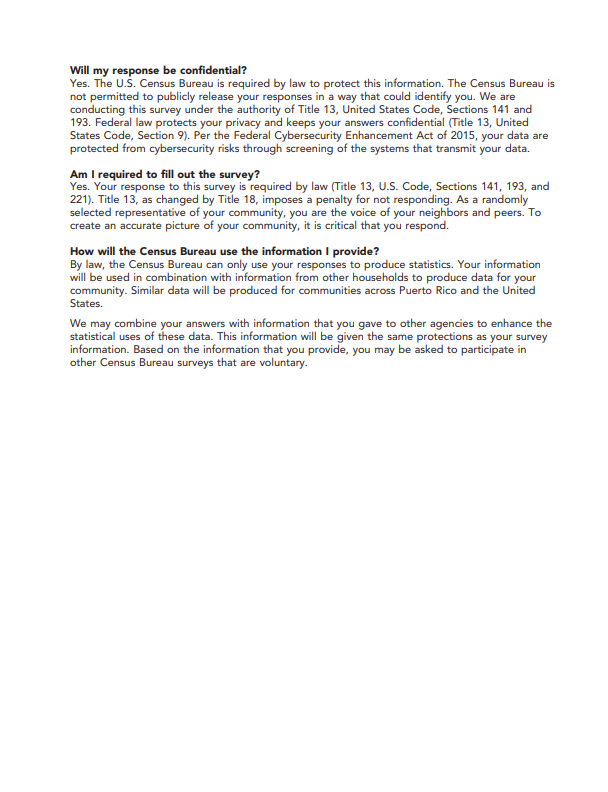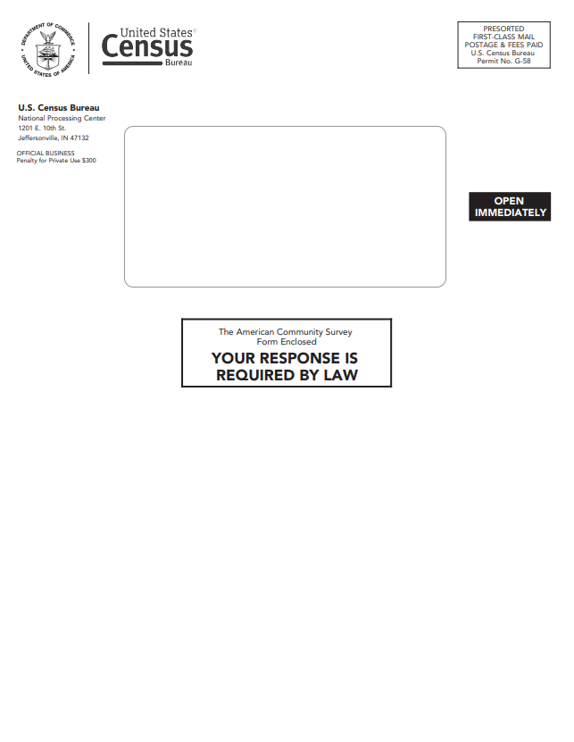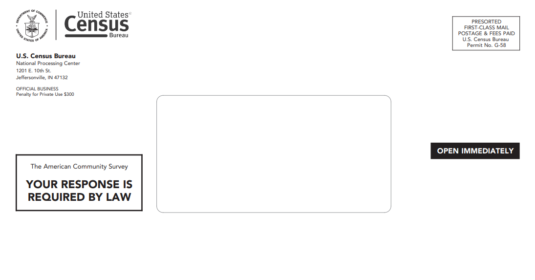 The first mailing focuses on building trust with the respondent through messages that legitimize the survey and connect the survey to the Census Bureau, a known and trusted organization. In social exchange theory, building trust is the most important aspect of survey messaging (Groves et al., 2012; Dillman, Smyth, and Christian, 2014). With increased trust, subsequent statements such as the benefits of survey participation are more likely to be believed.