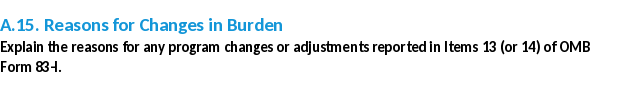 There is an error in the prior reporting values. The total cost burden should have been $177,675. It appears that some non-respondent burden costs had been included in the number reported. For this reason, there is a significant reduction in the estimated respondent burden. When looking at the correct value, the slight increase is total cost burden is clearly due to an increase in the after annual number responses and corresponding increases in the total time burden.