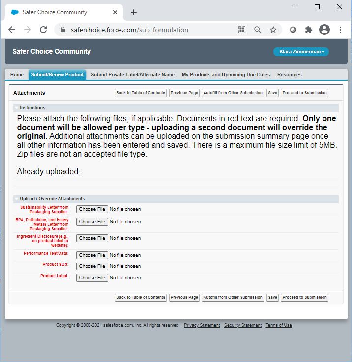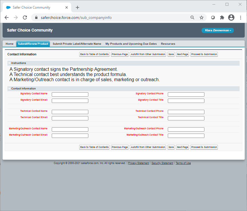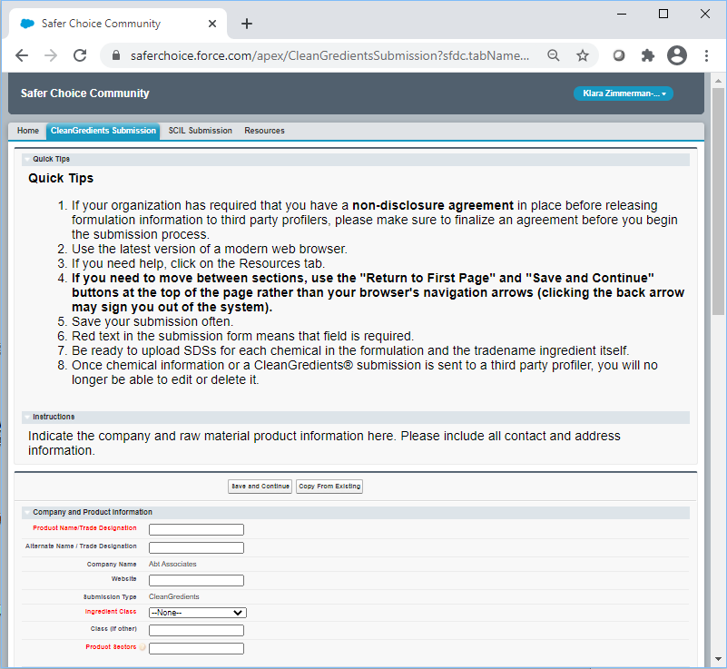 Safer Choice Program: Product and Ingredient Submissions in the Safer Choice Community Cloud-based Salesforce System