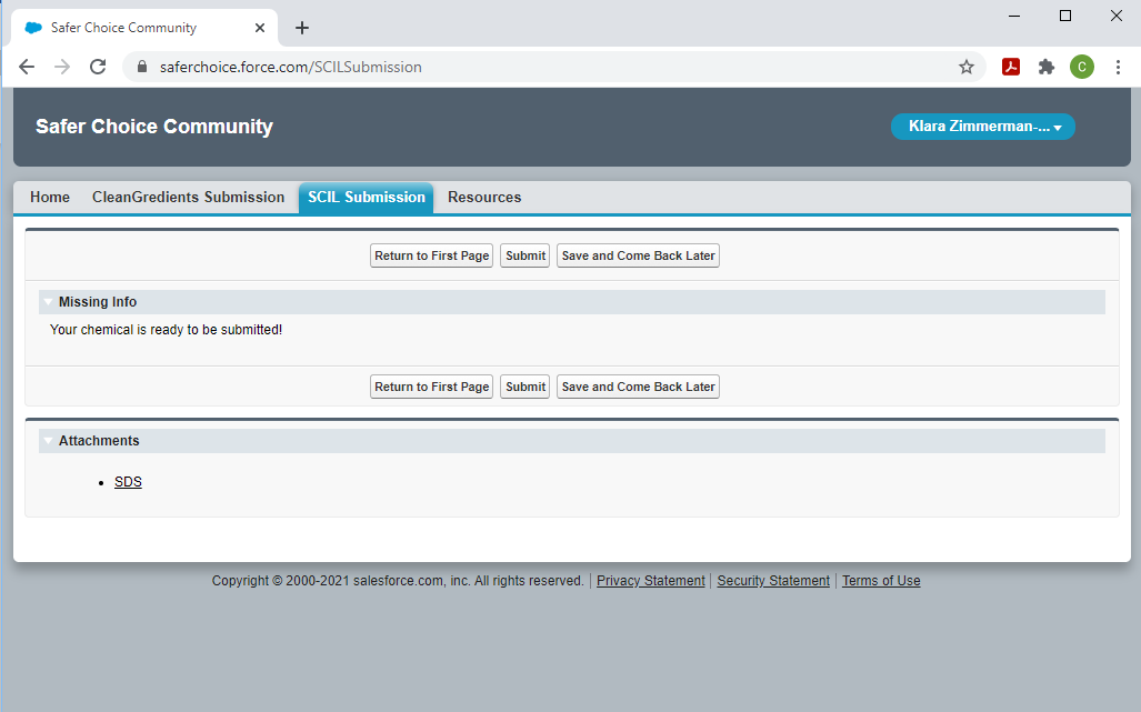 Safer Choice Program: Product and Ingredient Submissions in the Safer Choice Community Cloud-based Salesforce System
