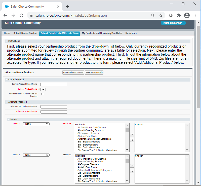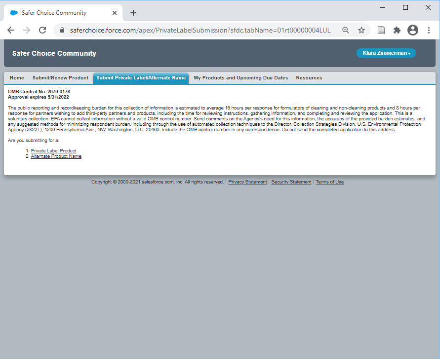 Safer Choice Program: Private Label Submissions in the Safer Choice Community Cloud-based Salesforce System