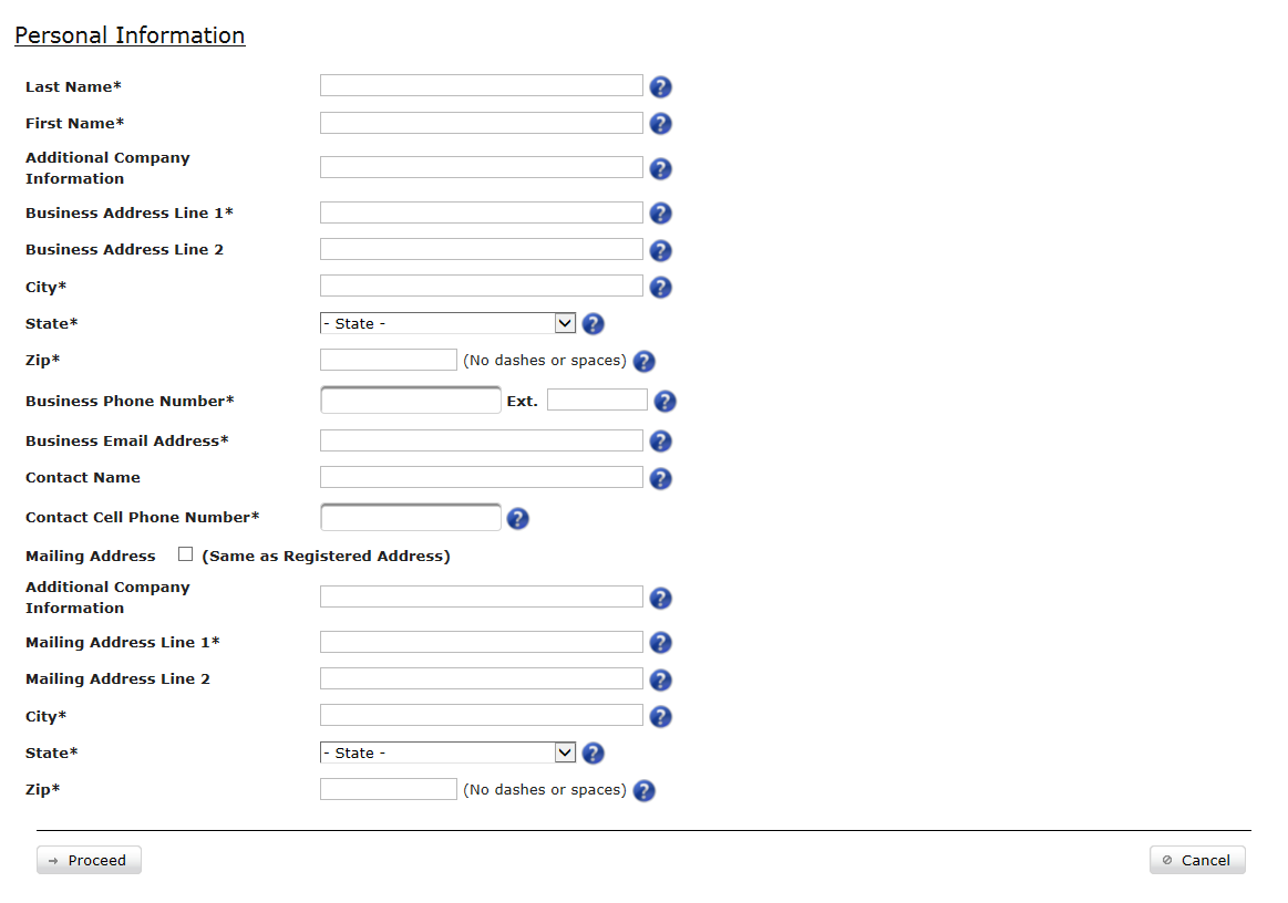 fields (indicated by an ‘*’) must be filled out