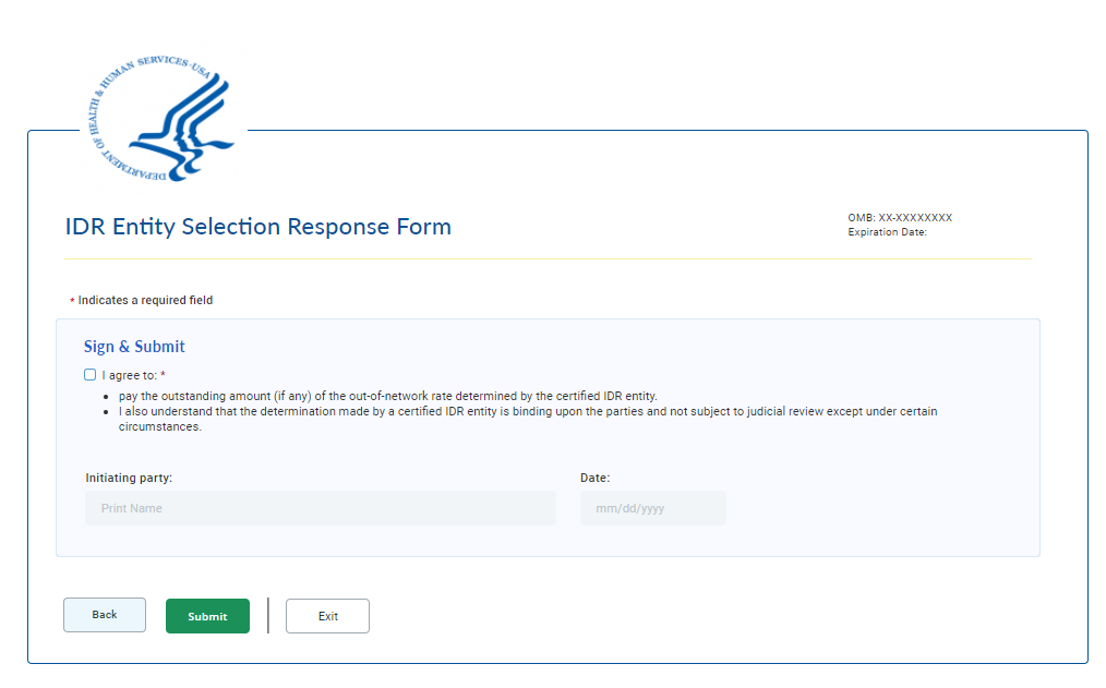You’ll receive an email confirming the selection of the certified IDR entity. If an alternative certified IDR entity has been selected, you will be given the opportunity to accept or deny the alternate selection.