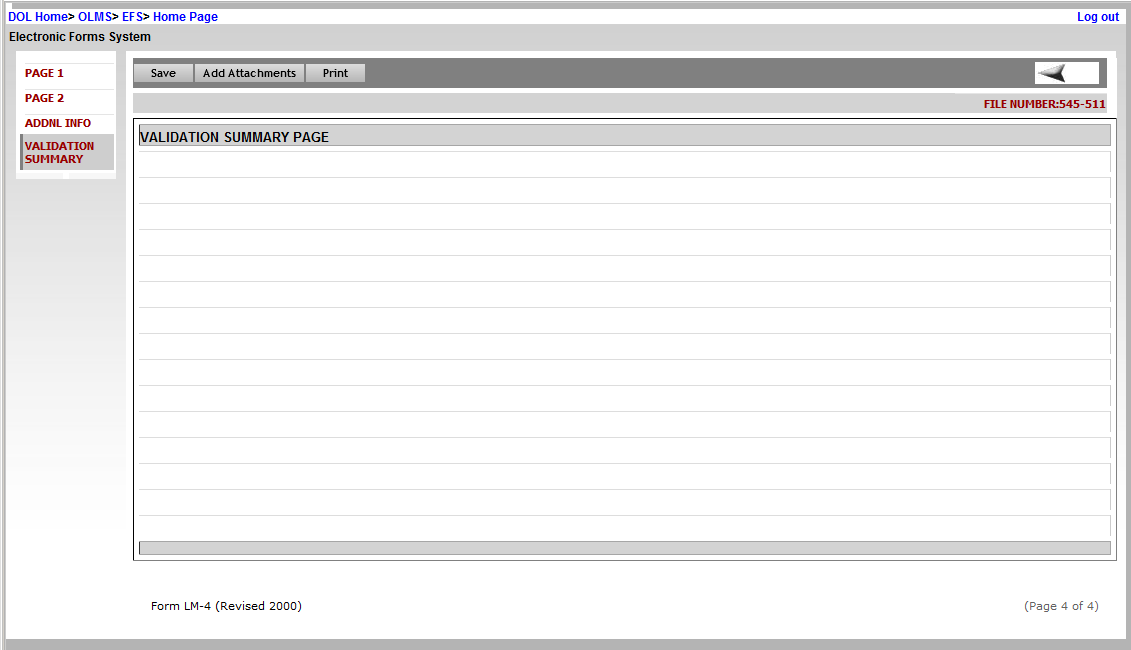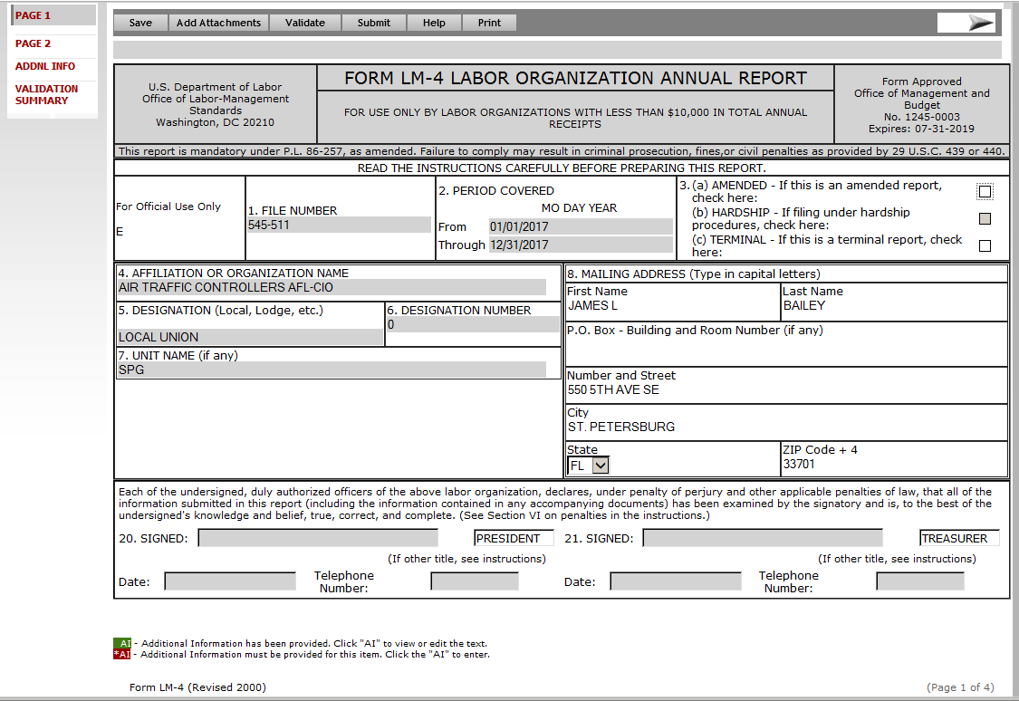 LM-4 Labor Organization Annual Report- EFS Screenshot