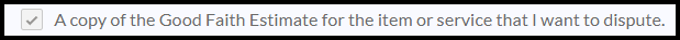 A copy of the Good Faith Estimate for the item or service that I want to dispute.
