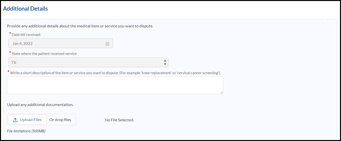 Provide any additional details about the medical item or service you want to dispute.