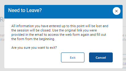 To exit the web form, select Exit.