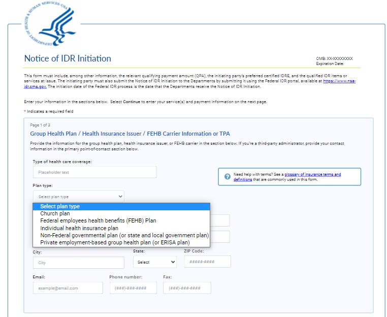 By using forms we provide for use in connection with the Federal Independent Dispute Resolution (IDR) process, you agree to the collection and use of information as described in this Privacy Act Statement.