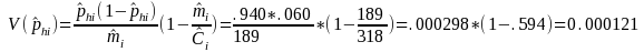 In this type of estimator, for an area, we are estimating the proportion, phi hat, of the total number of DAFW cases in industry i that have characteristic h. Under the assumption that the design effect is one and that the total DAFW case sample size for the industry is fixed, we can use the standard variance formula for simple random sampling without replacement to model the variances and relative standard errors for these proportions: