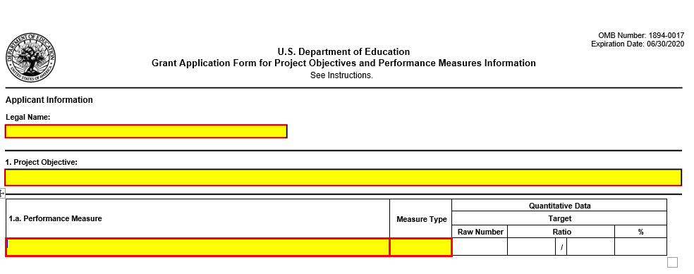 Quantitative Target Data: For quantitative performance measures with established quantitative targets, provide the target you established for meeting each performance measure. Only quantitative (numeric) data should be entered in the Target boxes. If the collection of quantitative data is not appropriate for a particular performance measure (i.e., for qualitative performance measures), please leave the target data boxes blank.