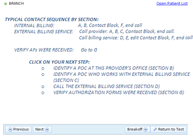 IF RECORDS ARE KEPT BY AN EXTERNAL BILLING SERVICE, ASK TO SPEAK WITH THE PERSON IN THE OFFICE WHO DEALS WITH THE EXTERNAL BILLING SERVICE.