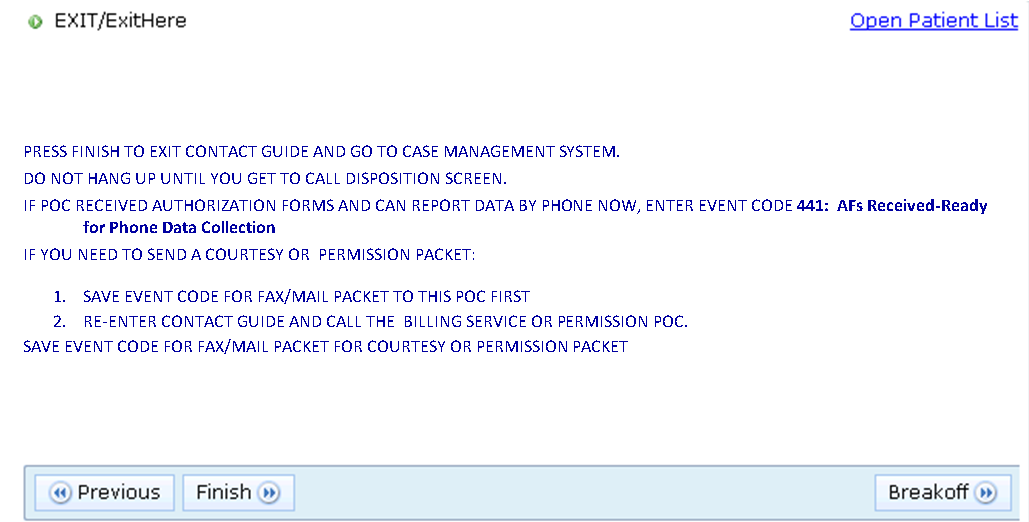 READ IF THE PERSON ON THE PHONE WOULD LIKE TO PROVIDE THE DATA PRIOR TO RECEIVING AUTHORIZATION FORM(S): In order to remain HIPAA compliant, I need to send you the authorization form[s] first. Once you have received the form[s], then we can arrange for the collection of the data.
