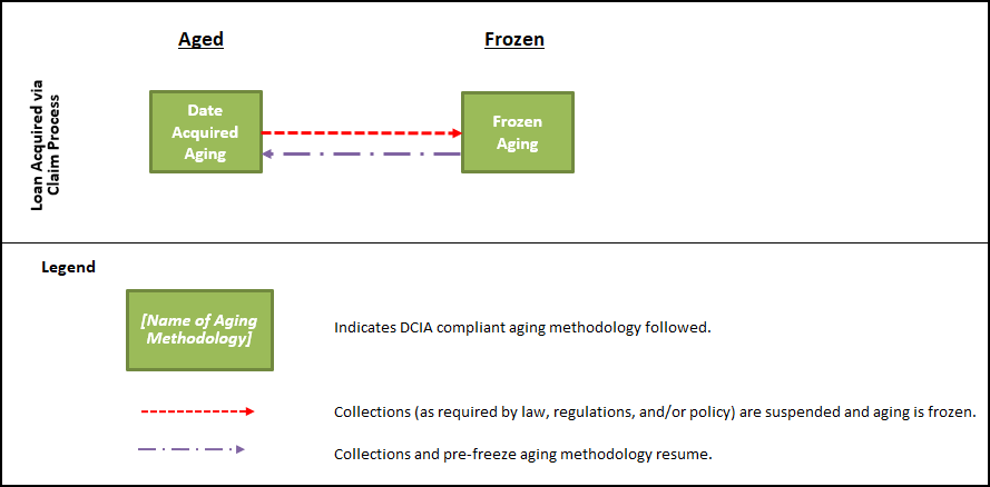 The remainder of this section describes each of the two DCIA aging methodologies in more detail. Note, per DCIA, there are only two possible DCIA Delinquency Statuses – Current or Delinquent. Based upon existing business processes, debt held by a GA is always “delinquent” for DCIA purposes.