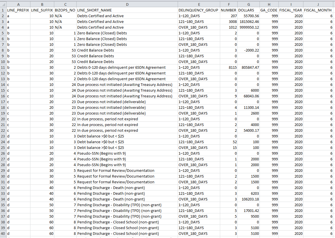 Federal Student Aid (FSA) uses data supplied by its loan servicers to satisfy mandatory and ad- hoc debt collection reporting requirements related to receivables due from the public. FSA is required to submit receivable information to the United States Department of the Treasury (Treasury), the Office of Management and Budget (OMB), and the Chief Financial Officers’ Council (CFOC).