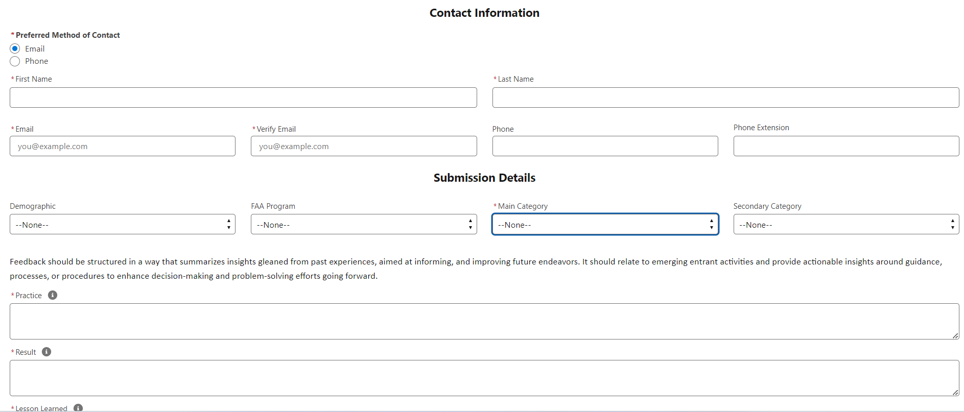 This IC will create a feedback loop which will allow the FAA to receive UAS stakeholder input to help improve FAA processes, guidance, and procedures. It will enhance user experience by applying lessons learned from previous projects to streamline and provide clarity for future projects.