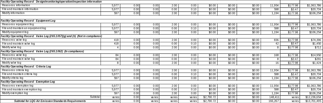 EPA estimates that up to 28 percent LQGs are subject to 40 CFR part 265, subpart BB requirements – depending on the specific paperwork burden category. All generators subject to subpart BB are required to maintain a unit operating record. The contents of the operating record will vary according to site-specific circumstances.