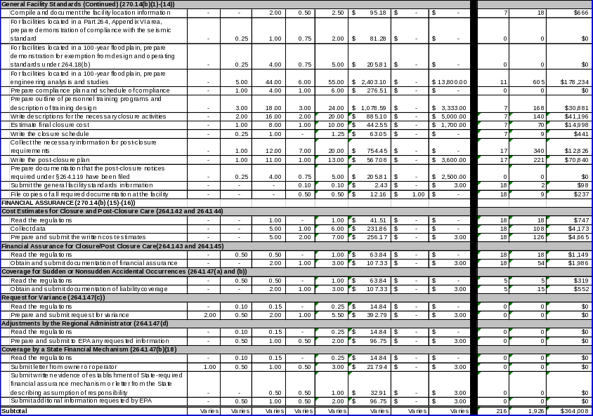Sections 270.14 ‑ .16 require owner/operators of new facilities to submit detailed written estimates of the cost of facility closure and post‑closure care in accordance with the requirements of §§264.142(a) and 264.144(a), respectively.