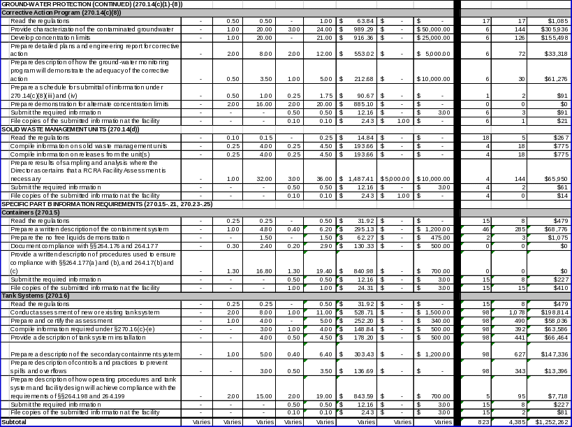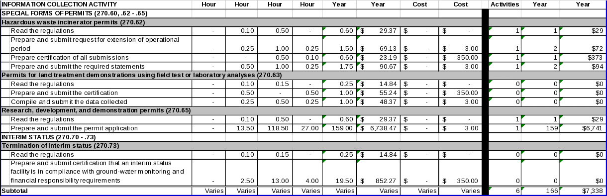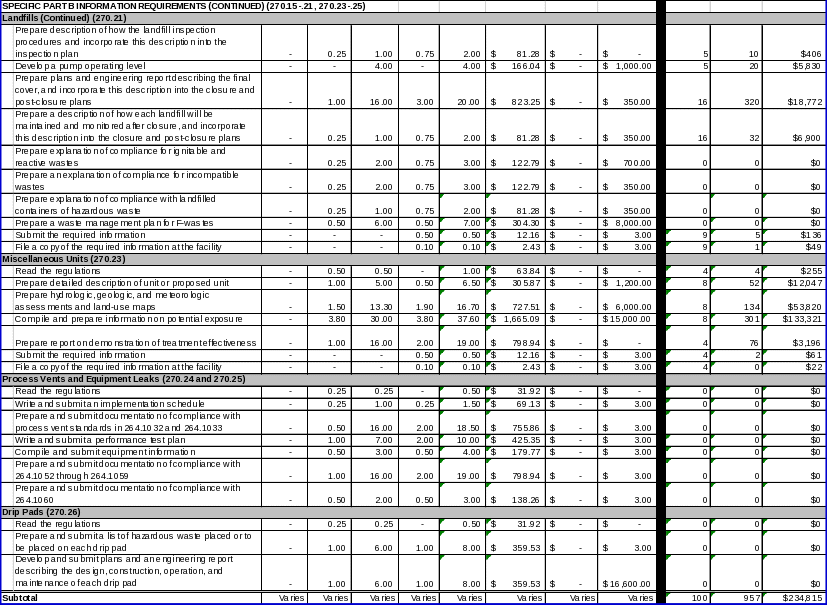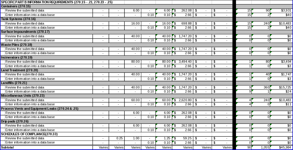 Table 1 presents the estimated annual universe of facilities subject to the various types of RCRA permitting requirements covered in this ICR. Table 2 presents the estimated annual universe of facilities and units covered by RCRA Part B permit applications. Table 3 presents the estimated annual universe estimates of facilities and units covered by a RCRA post-closure permit applications.