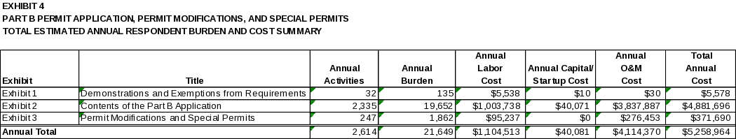 The overall annual burden associated with the Part B requirements is 19,440 hours, which is a decrease of 646 hours under the previous version of this ICR. This difference is due to the smaller number of affected facilities, based on the current information and reporting requirements from the RCRAInfo database.