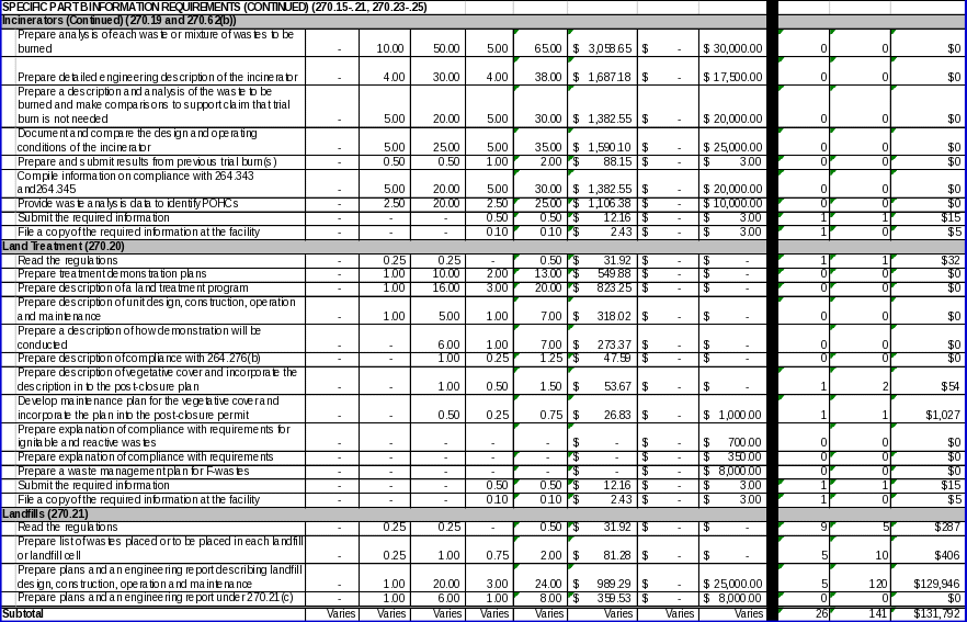 EPA promulgated regulations in 40 CFR Part 270 requiring owner/operators to submit specific additional information for various units at their facilities. These requirements are specified for owner/operators of facilities that perform the following activities: