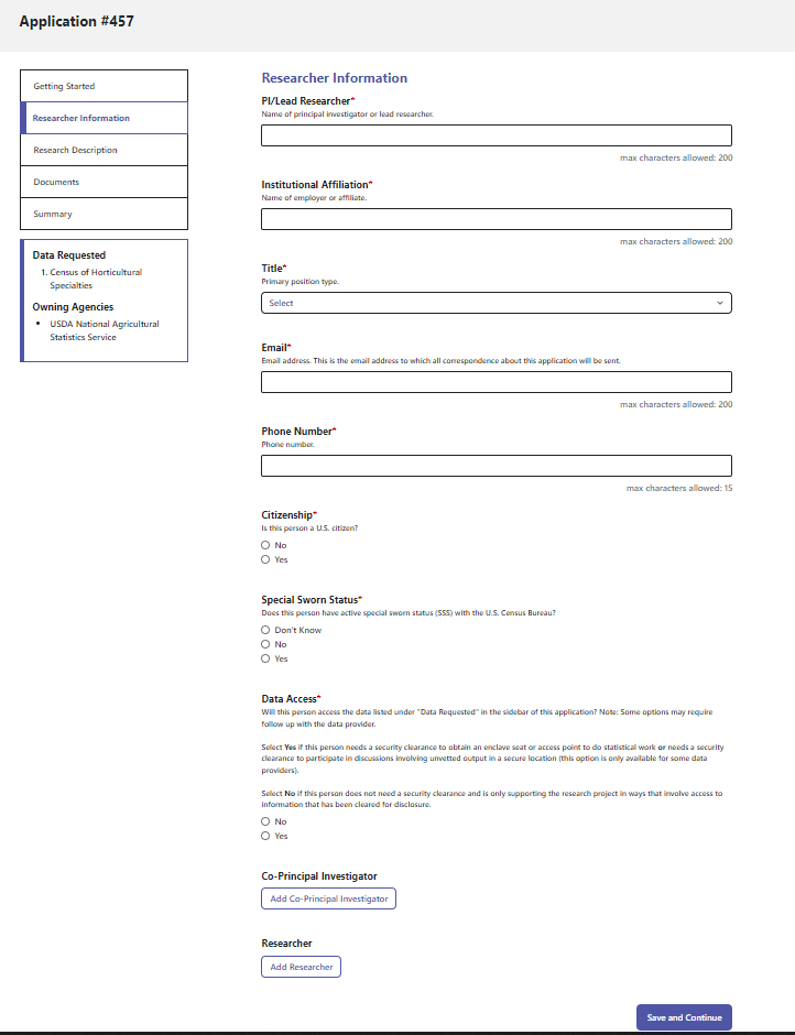 This standard application replaces the processes and forms previously used by the participating federal agencies. Your answers will be reviewed by agency staff responsible for granting access to restricted data and you may be asked to revise and resubmit to provide additional information. Finally, this is the beginning of the process of requesting access, there may be additional steps or documentation required, such as an IRB approval or signed restricted data use agreement, upon approval.