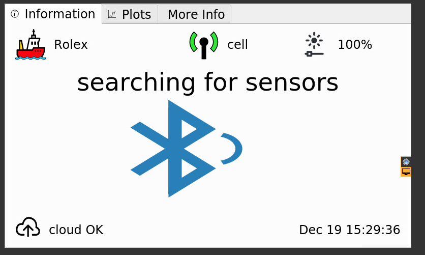 Figure 1 – Screenshot of Lowell Deck Data Hub aboard the F/V Rolex searching for bluetooth enabled sensor to connect to