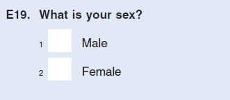 The sex item will be modified from one question into two to collect gender identity, as follows: