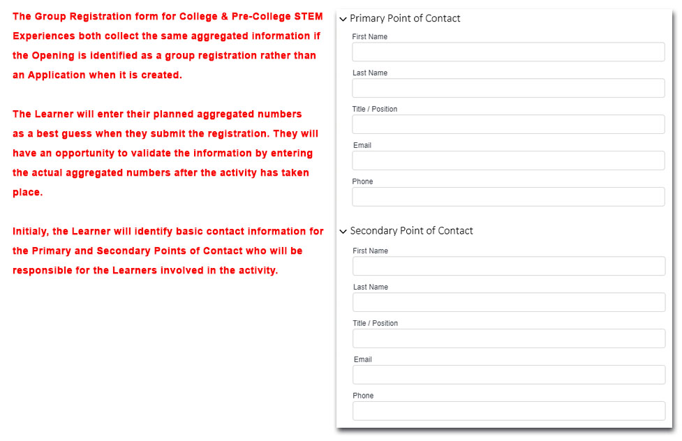 College / Pre-College STEM Experience Group Registration – Supporting Documentation