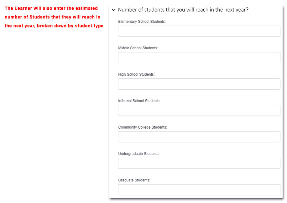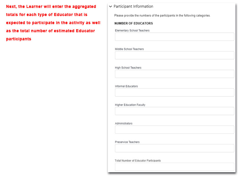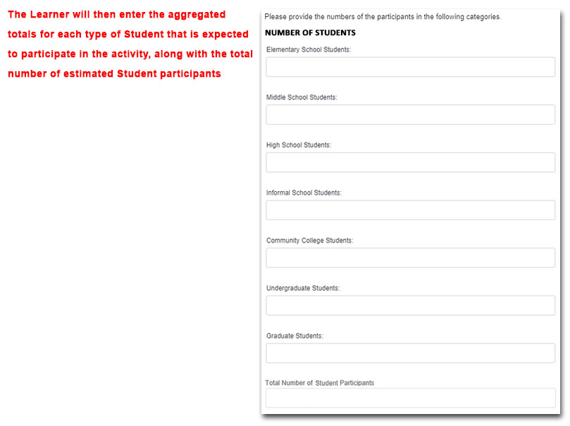 Professional Development Application – Estimated Numbers