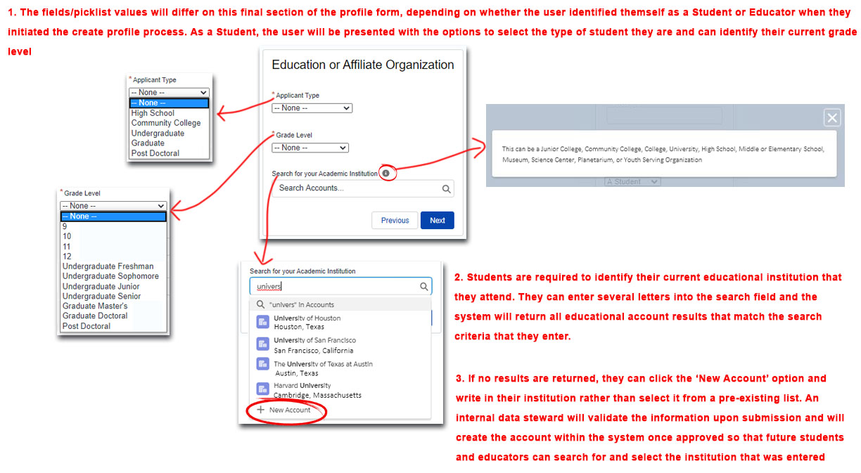 11. Create Profile – Education or Affiliate Organization for Student 17