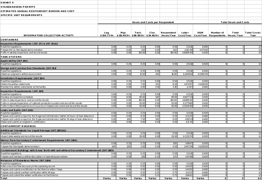 EPA estimated respondent burden associated with all of the requirements covered in this ICR in Exhibits 1 through 9. The exhibits estimate the number of hours required to conduct each individual information collection activity and the cost associated with that activity.