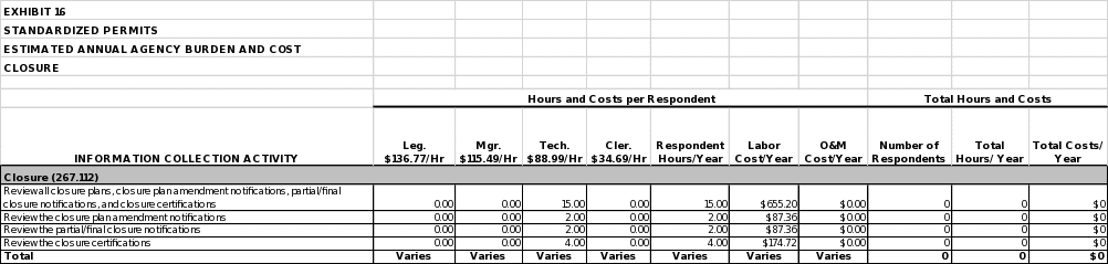 40 CFR part 267, subpart G (sections 267.110 through 267.117) requires owners and operators to develop closure plans, amend these plans when appropriate, and submit to EPA closure certifications. EPA reviews information in the closure plans to determine whether closure activities will comply with the regulatory requirements. EPA uses information in the closure certifications to determine that closure took place in accordance with the approved closure plan.