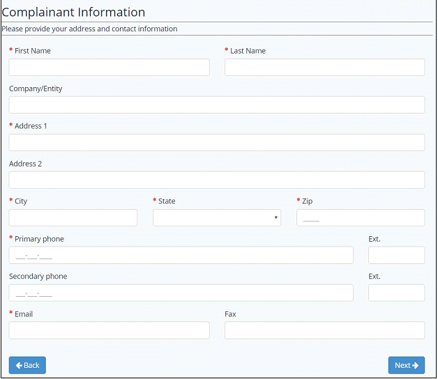 After completing all form sections, users will be taken to the Review and Submit section. In this section, users may review the information entered and make edits as necessary. Once the complainant reviews all the information, click the checkbox presented, and you will then be able to submit the complaint.