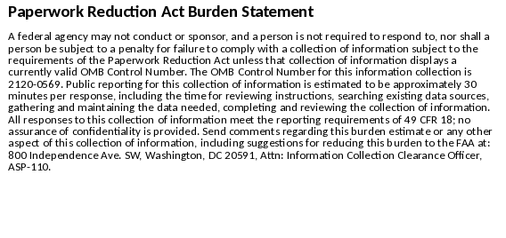 | DEPARTMENT OF TRANSPORTATION | OMB CONTROL NUMBER 2120-0569 | |||||