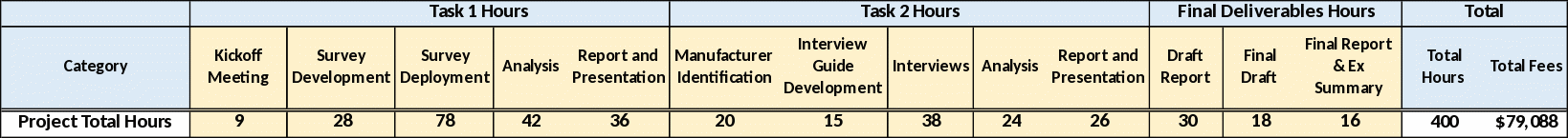 Funding for the project is being provided under the 2019 Cooperative Agreement between AAPA and MARAD. Up to $110,000 is available under the 2020 Modification 2 of this agreement for domestic preference activities, with an expectation of $79,088 to be used for this project. AAPA selected a contractor to perform the project work using this funding, with the budget shown below:
