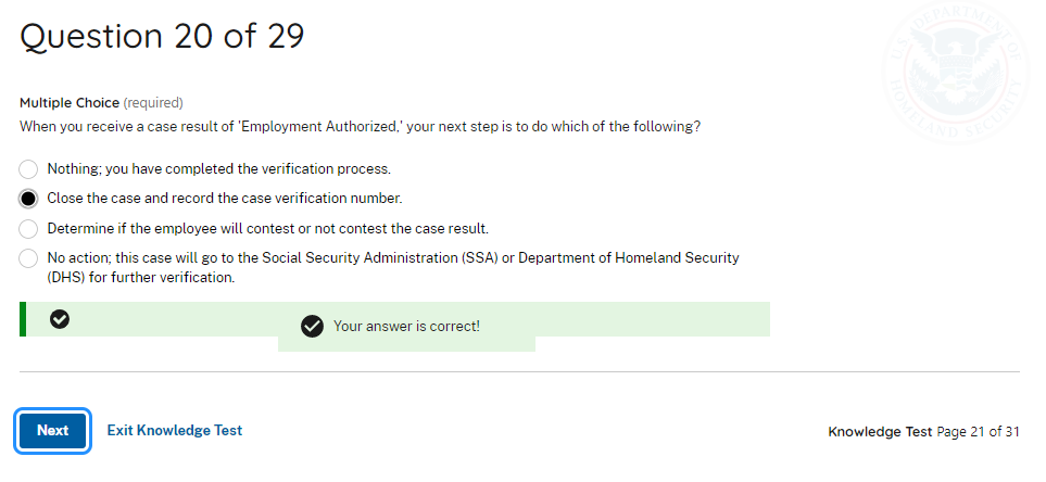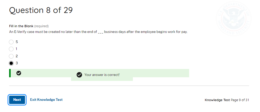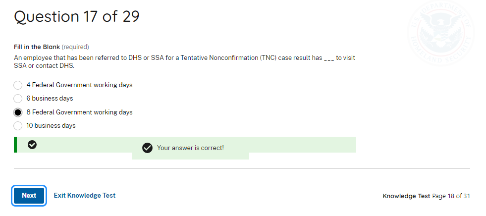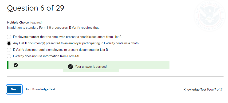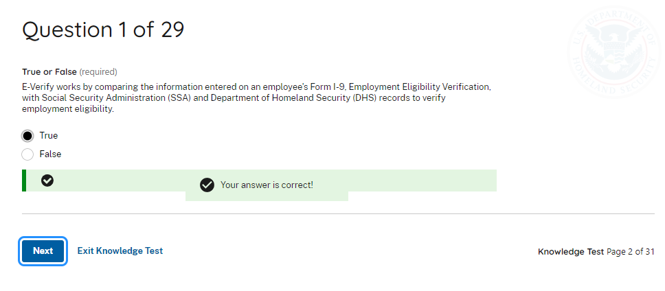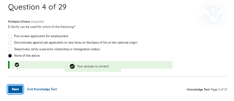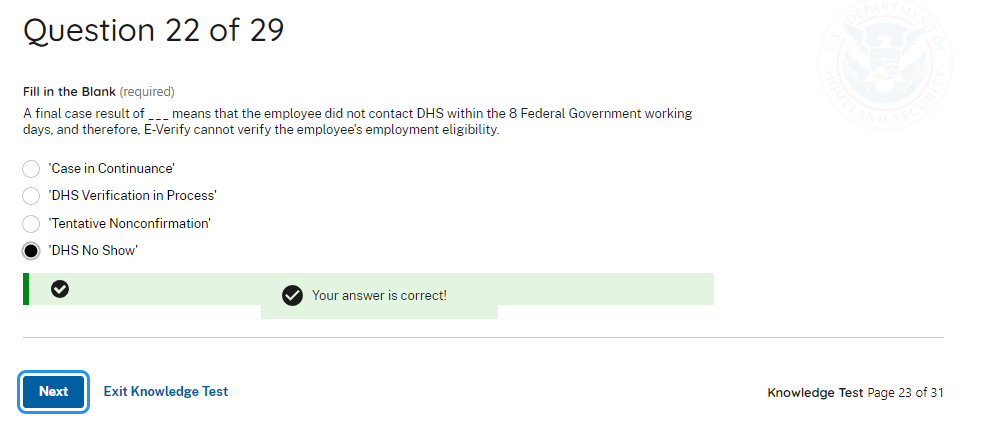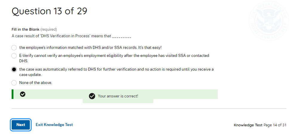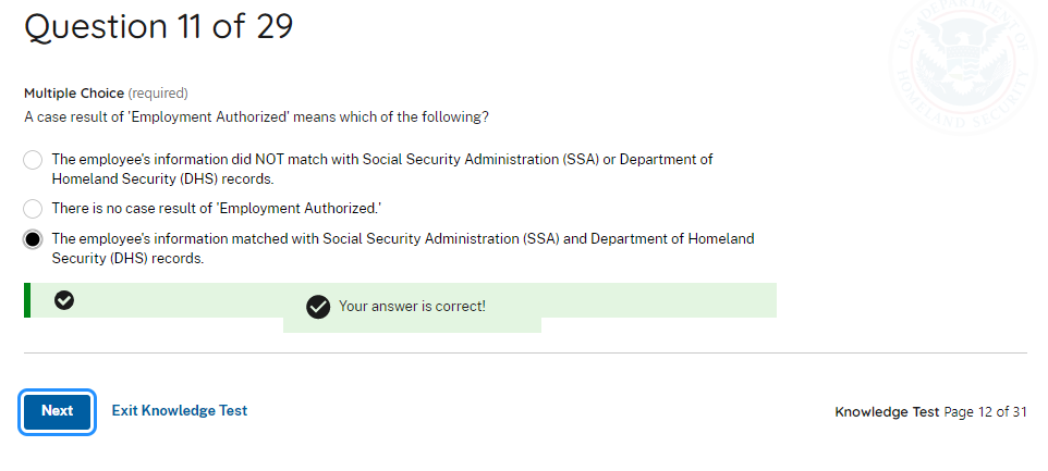Description: As a result of Legacy Retirement efforts, the redesigned E-Verify user interface has a modern design. The E-Verify lesson quiz questions have been modified to suit the new design. The E-Verify Guidance will revise and connect the tutorial quiz questions and answers with the Legacy Retirement modernization efforts.
