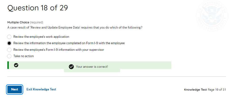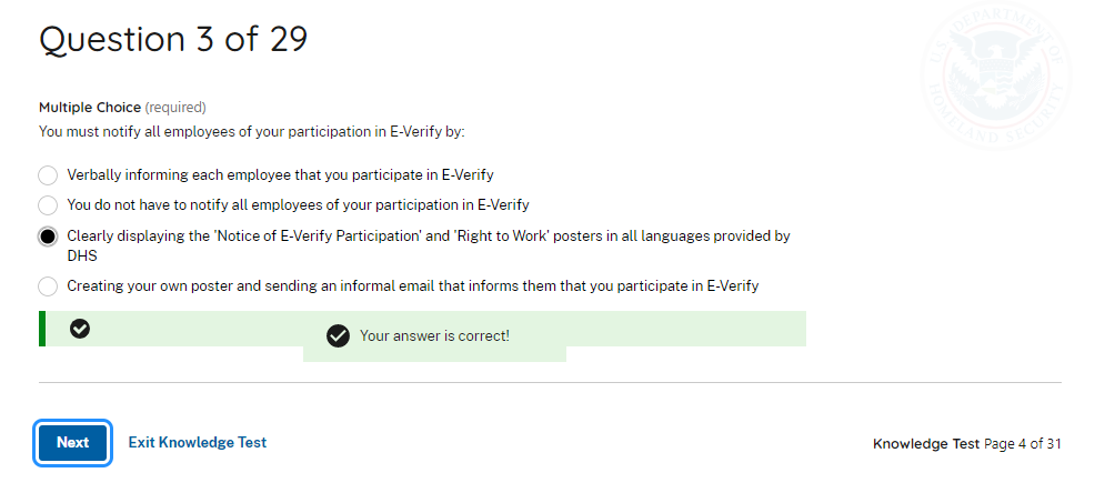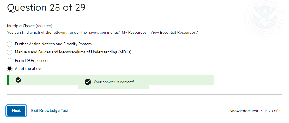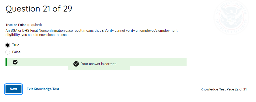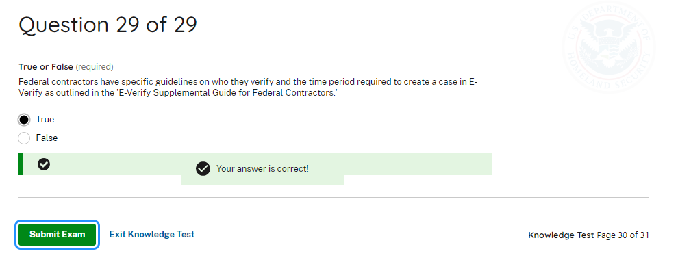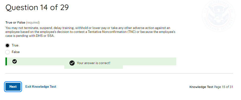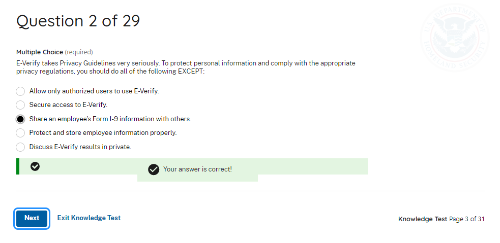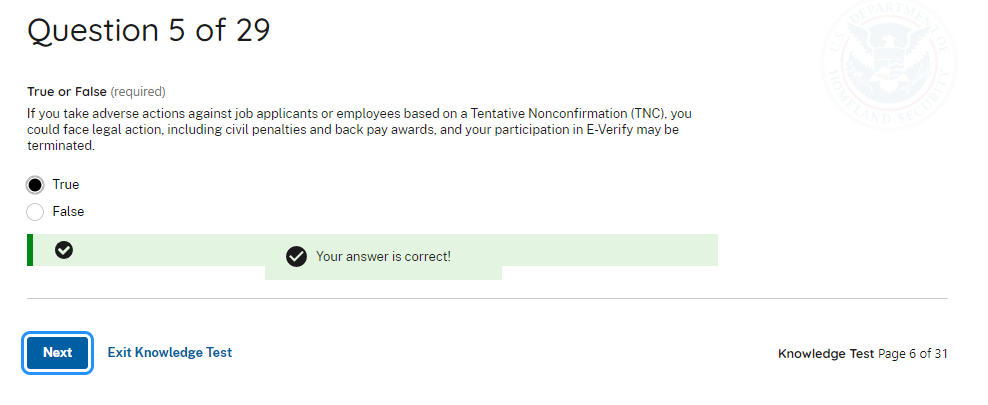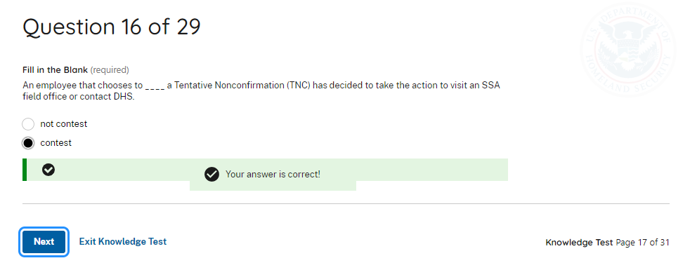 Description: As a result of Legacy Retirement efforts, the redesigned E-Verify user interface has a modern design. The E-Verify lesson quiz questions have been modified to suit the new design. The E-Verify Guidance will revise and connect the tutorial quiz questions and answers with the Legacy Retirement modernization efforts.