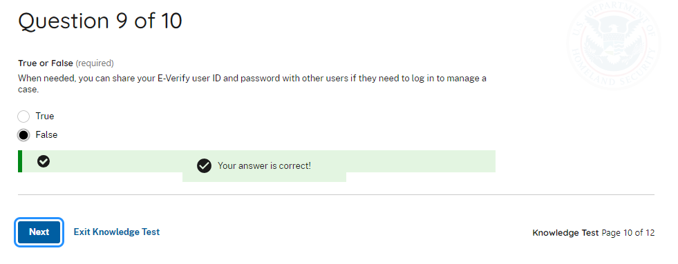 When needed, you can share your E-Verify user ID and password with other users if they need to log in.
