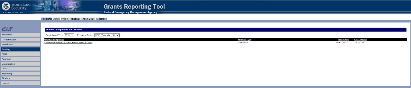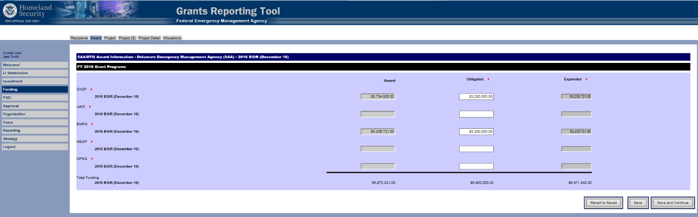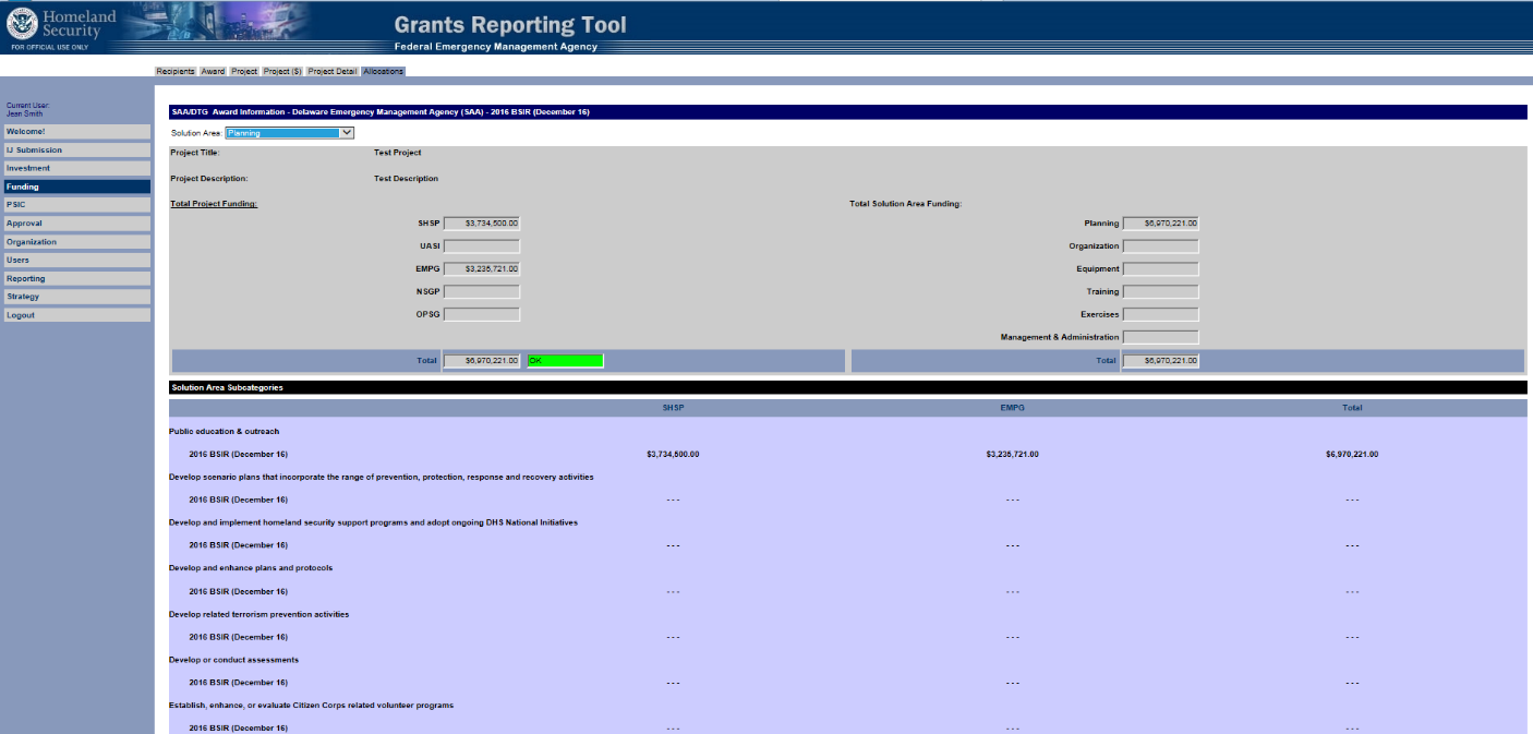 The collection of this information is authorized by the Homeland Security Act of 2002, as amended by the Post Katrina Emergency Management Reform Act of 2006, 6 U.S.C. § 238. The collection is also authorized by Homeland Security Presidential Directives Five and Eight (HSPD-5, 8). This information is being collected for the primary purpose of supporting the Department of Homeland Security (DHS) in the storage and management of Biannual Strategy Implementation Reports (BSIR). By providing interactive capabilities to store and manage these reports, DHS empowers state employees to provide grant-related funding information from an environment that is available throughout the year. The disclosure of information on this form is voluntary; however, failure to provide the information requested may delay or prevent the organization from receiving grant funding