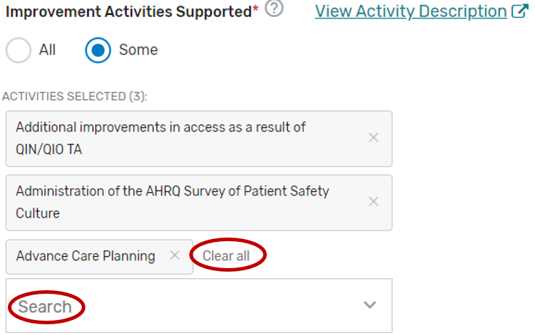Improvement Activities tab – Intermediaries are required to select the improvement activities supported for the 2023 MIPS performance period. For more information, please see the 2022 MIPS Improvement Activities User Guide.