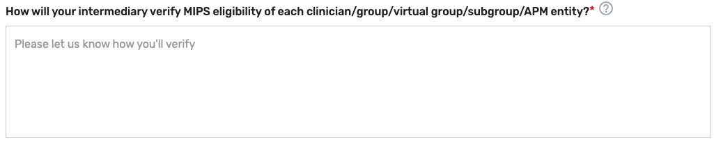 According to the Paperwork Reduction Act of 1995, no persons are required to respond to a collection of information unless it displays a valid OMB control number. The valid OMB control number for this information collection is 0938-1314 (Expiration date: 01/31/2025). The time required to complete this information collection varies per response, including the time to review instructions, search existing data resources, gather the data needed, and complete and review the information collection. If you have comments concerning the accuracy of the time estimate(s) or suggestions for improving this form, please write to: CMS, 7500 Security Boulevard, Attn: PRA Reports Clearance Officer, Mail Stop C4-26-05, Baltimore, Maryland 21244-1850. ****CMS Disclosure**** Please do not send applications, claims, payments, medical records or any documents containing sensitive information to the PRA Reports Clearance Office. Please note that any correspondence not pertaining to the information collection burden approved under the associated OMB control number listed on this form will not be reviewed, forwarded, or retained. If you have questions or concerns regarding where to submit your documents, please contact QPP at qpp@cms.hhs.gov