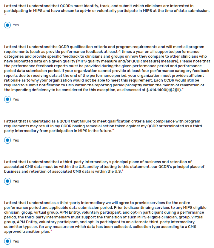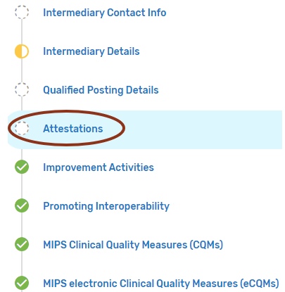 Attestations tab – Intermediaries are required to attest that they understand and are able to meet the participation requirements for the 2023 MIPS performance period.