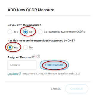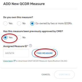 Click on “Find Measure”. If the correct QCDR measure information appears, select “Continue” located at the bottom of your screen.