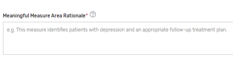 Which Meaningful Measure Area applies to this measure?* – Select 1 meaningful measure area that best applies to the measure from the drop-down list.