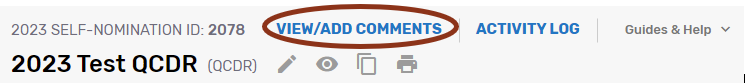 Comment functionality is available in the Self-Nomination tool. It may be used for specifying any updates or informing CMS about any changes that have been applied to the self-nomination or QCDR measures. Refer to “Comments” section of this User Guide for additional information.